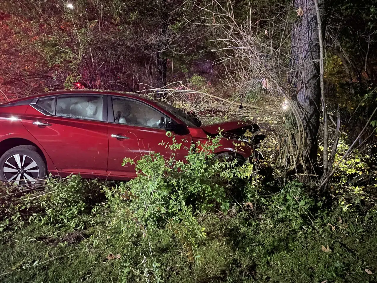 Authorities say the driver, a 28-year-old male from North Dakota, was traveling eastbound on Huntly Road when he left the road, hit a sign, and collided into a tree.