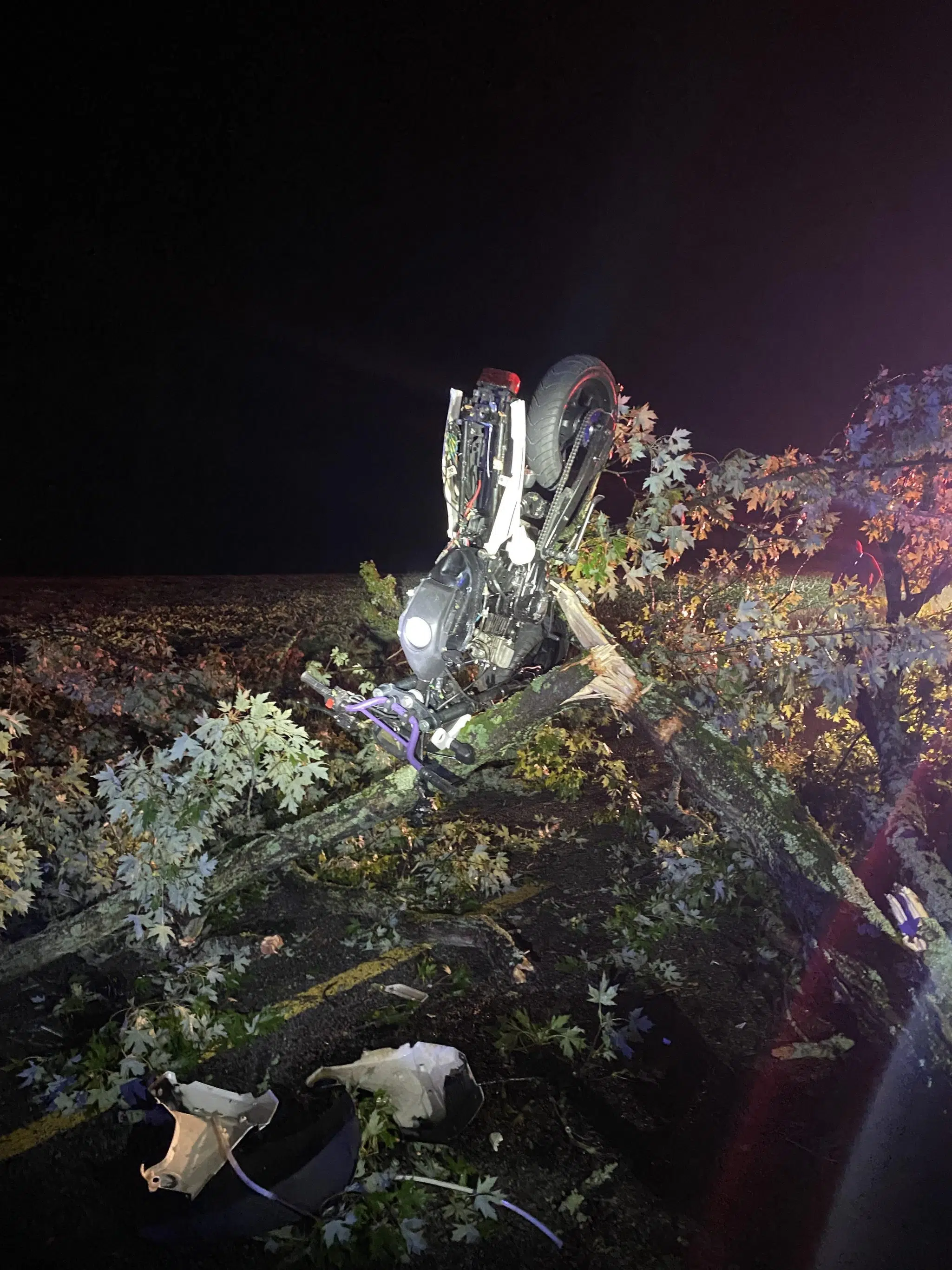 CASS COUNTY, MI (WKZO AM/FM) – An Indian Motorcyclist was taken to the hospital with injuries after crashing into a downed tree blocking the road early Monday morning, August 7.