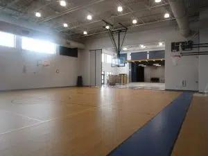 Superintendent Darrin Slade says the gym in this building rivals gyms in much larger schools. It can be opened into the cafeteria where there is a stage.