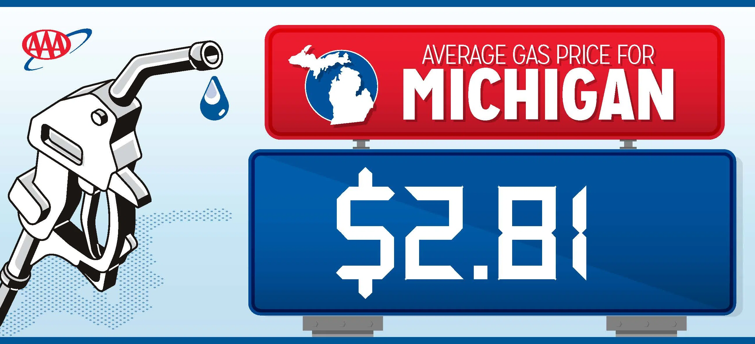 Triple-A Michigan says the average price is now up to $2.81, which is 10¢ lower than last month and down 23¢ from last year.