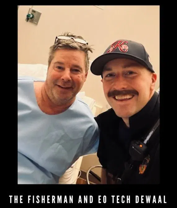 EO Tech Aaron DeWaal pulled the man to shore with the help of onshore officers and met with the man in the hospital.